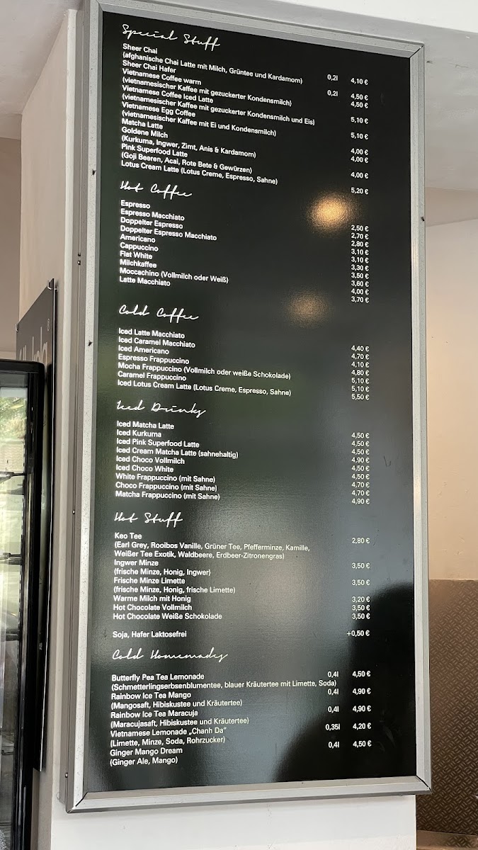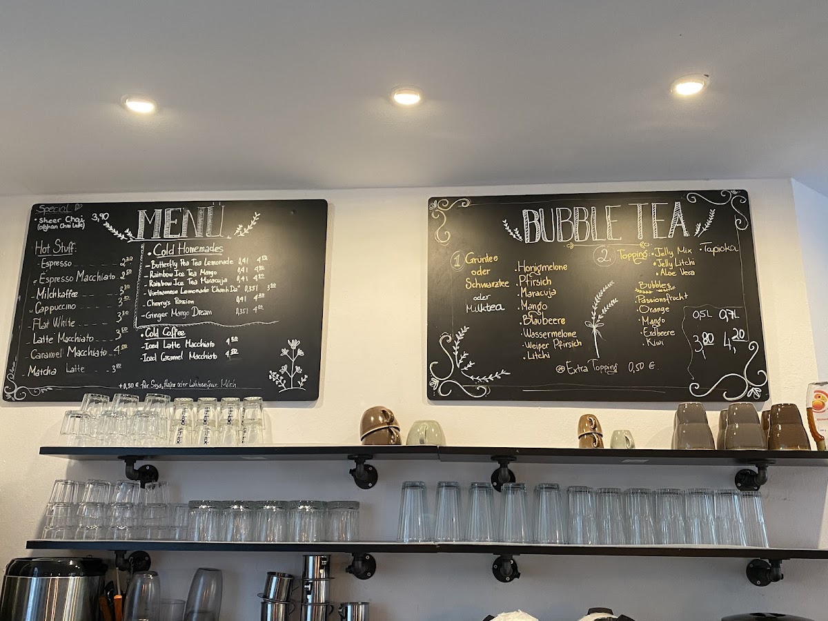 Whether you're stopping by for a quiet morning coffee or settling in for a relaxing afternoon break, the menu caters to moments of calm and casual enjoyment. You’ll find a range of warming drinks such as matcha latte with oat milk, Afghan chai, and traditional cappuccino, alongside seasonal treats like glühwein and fresh fruit juices.