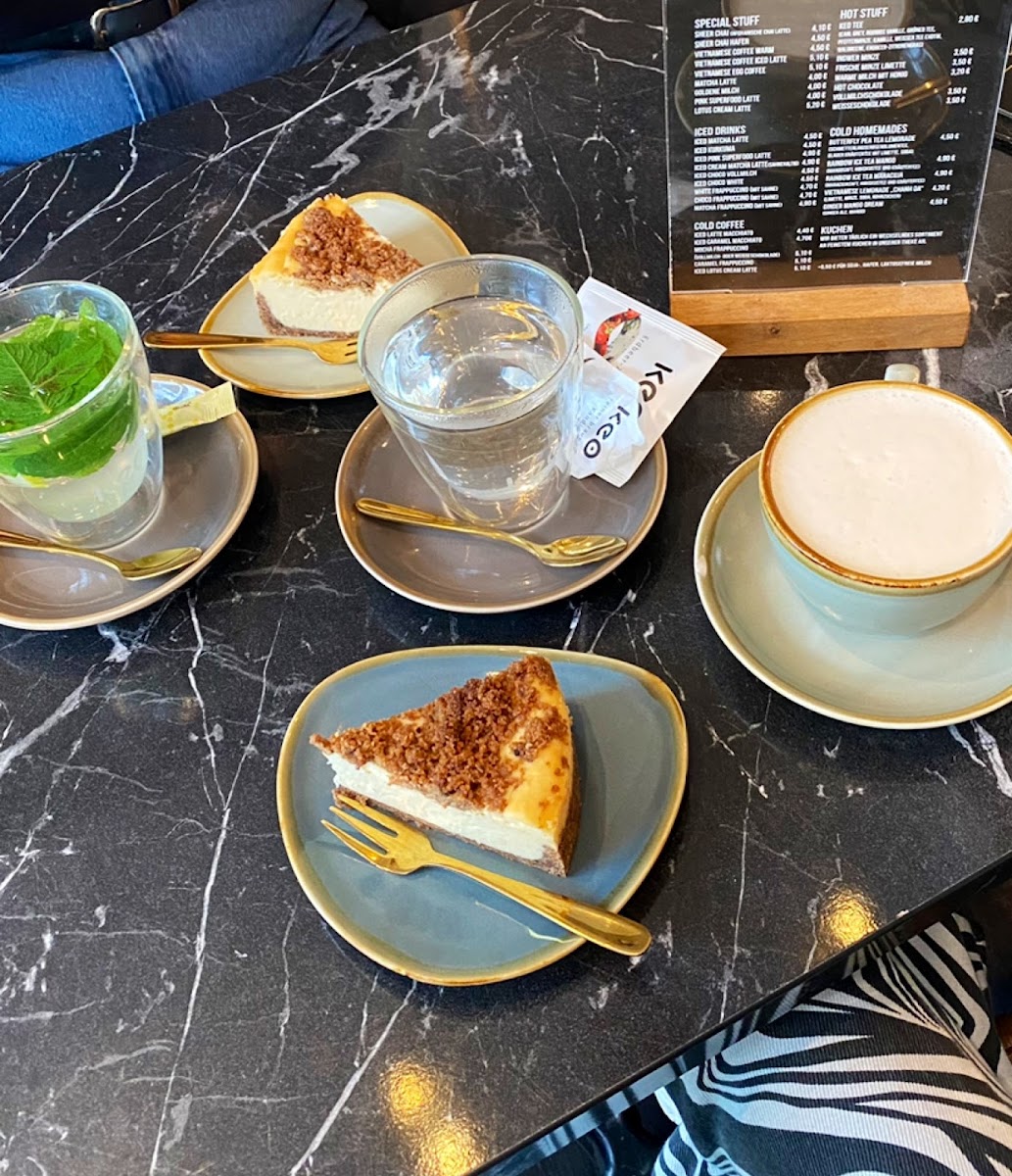The food options lean towards homey and familiar delights—cakes and pastries like carrot cake, blueberry cheesecake, and apfelstrudel fit perfectly with the inviting, cozy atmosphere. These are the kind of bites that pair naturally with a hot chocolate or iced coffee, encouraging slow, pleasant moments alone or in good company.